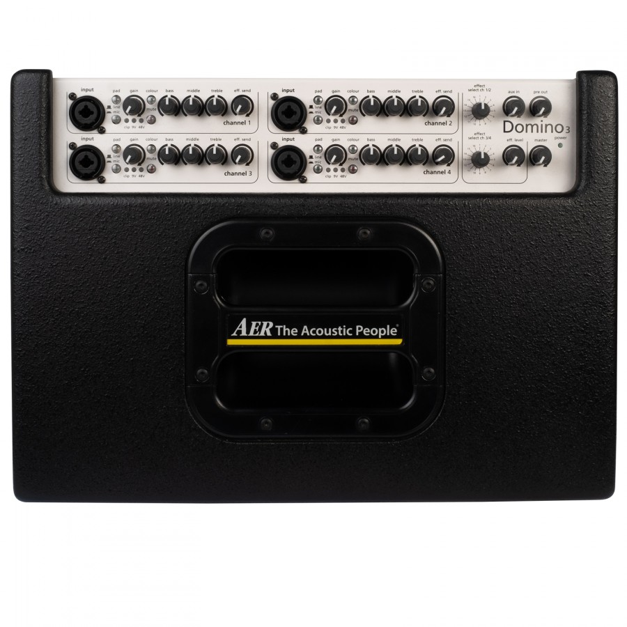 Maintenant vraiment stéréo, avec deux haut-parleurs double cône et des amplis de puissance haute performance, il embarque également deux unités d’effet indépendantes (16 presets chacune) assignées chacune sur une paire de canaux (1, 2 et 3, 4).