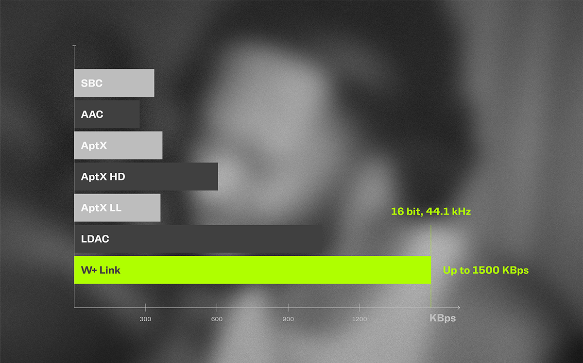 Le TMA-2 Studio Wireless+ est doté de la technologie W+ Link mise au point par AIAIAI, permettant d'obtenir une liaison audio sans fil à très faible latence et sans perte, contrairement au protocole Bluetooth. La double antenne du récepteur, situé dans le serre-tête H10 du casque, assure une liaison fiable en toute circonstance grâce à l'analyse constante du signal audio, afin de toujours capter le meilleur signal disponible. Sa bande passante élevée autorise une transmission sans compression du signal, assurant une qualité audio maximale de 1500 KBps par seconde à 16 bit /44.1 kHz pendant 16h sur batterie, et une latence stable imperceptible de 16 ms.