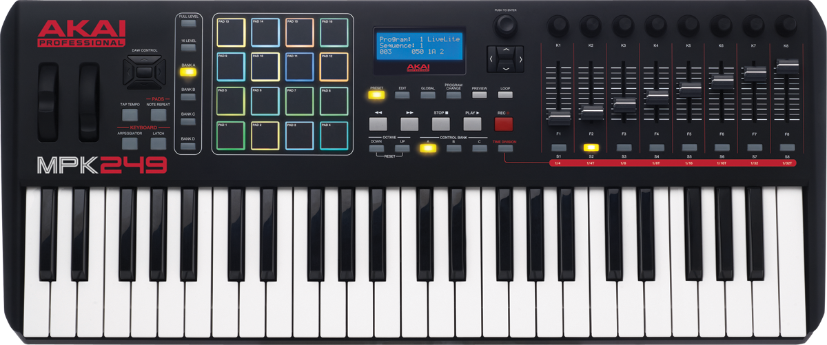 Claviers maîtres MPK AKAI Professional dotés d’un tout nouveau design, plus minces et disposant de pads rétro-éclairés RVB, inspirés directement de la MPC Renaissance, d'un écran LCD et de touches de contrôle dédiées pour l'accès direct aux fonctions de base des principaux logiciels Audio/Midi.