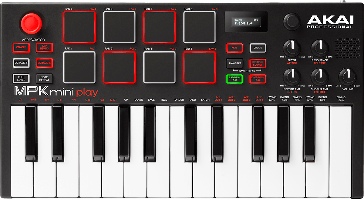 Il a de qui tenir ! Le MPK Mini Play est basé sur le modèle MPK Mini, un véritable best-sellers parmi les claviers de contrôle USB Midi nomades.