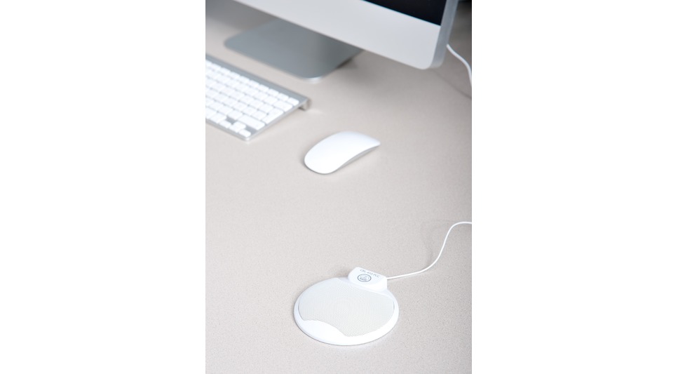 La connexion du microphone à l’ordinateur s’effectue par un connecteur jack stéréo 3,5 mm permettant ainsi une utilisation immédiate sans recourir à l’installation d’un pilote informatique. Un deuxième connecteur sous forme d’une embase jack stéréo 3,5 mm permet de cascader plusieurs microphones, pour obtenir une meilleure captation d’une conférence regroupant plusieurs personnes.