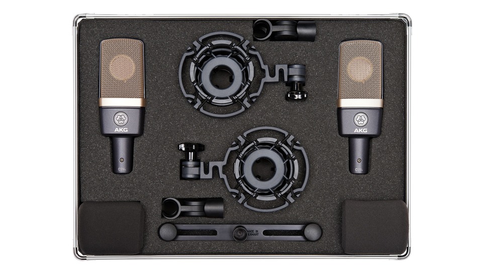 Couple appairé de microphones C314. La prise de son avec ce kit de microphones appairés permet de réaliser des enregistrements extrêmement riches en termes de restitution d'espaces.