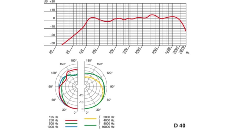 Le transducteur est protégé par une grille en acier tressé très robuste doublée d’un tissu spécial faisant fonction d’écran antivent pour éliminer au maximum les bruits de souffle des instruments à vent et les bruits de vent sur les scènes de plein air. Il supporte des niveaux de pressions extrêmement élevés. Son adaptateur pour pieds de micro intégré pivote sur 135° et son système de fixation standard H 440 permettant la fixation du microphone directement sur le cerclage des caisse-claires et des toms font du D40 un outil polyvalent pour la batterie, les percussions, les instruments à vent et la reprise d’ampli guitare.
