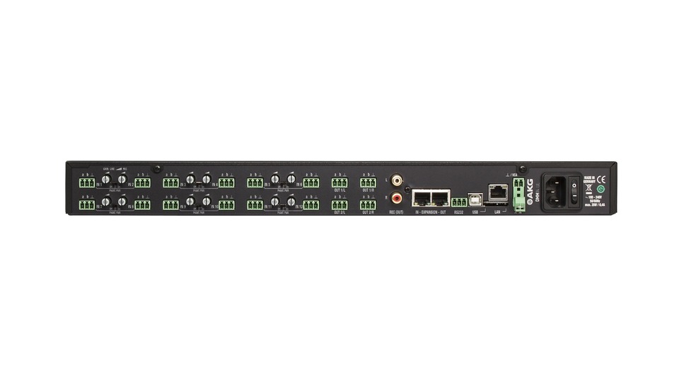 Une interface utilisateur intuitive permet de paramétrer les fonctions suivantes : niveau, aigus, basses, filtre coupe-bas, limiteur, compresseur, mixage automatique, priorité, pan/balance, départ vers enregistreur, départ vers sortie générale, délai.