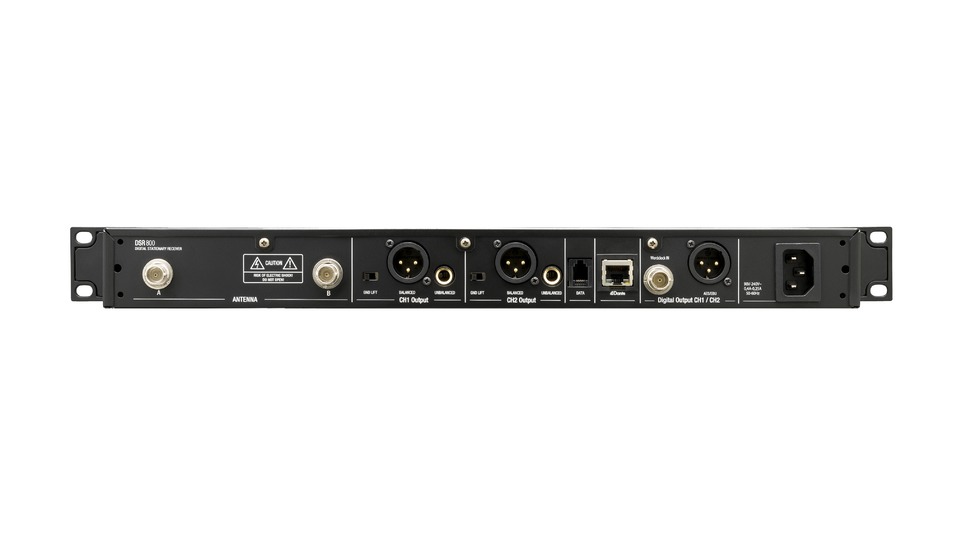 Le récepteur numérique DSR800 deux canaux dispose d’une importante largeur de bandes de 150 MHz, permettant un paramétrage facile de systèmes multicanaux dans des environnements radio fréquences encombrés. Il est conçu pour travailler avec les microphones émetteur numériques DHT800 et les boîtier émetteur numériques DPT800.