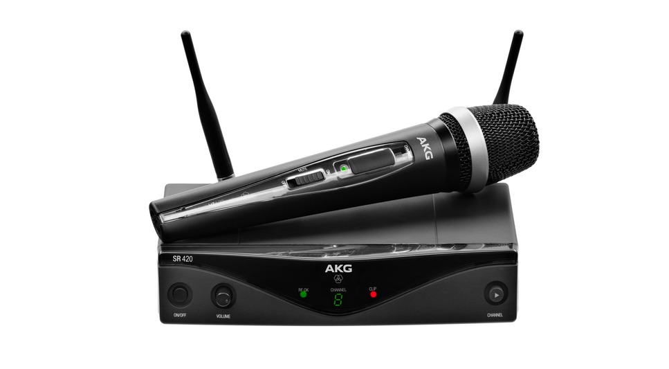 Un système complet WMS 420 se compose d’un récepteur à fréquences fixes SR420, d’un émetteur main HT420 ou d’un boîtier émetteur PT 420. L’émetteur HT420 est équipé de la célèbre capsule du microphone dynamique D5, caractérisée par son niveau élevé de gain avant larsen, sa très faible sensibilité aux bruits de manipulation et sa qualité sonore propre à AKG.