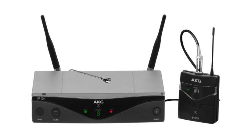Un système complet WMS 420 se compose d’un récepteur à fréquences fixes SR420, d’un émetteur main HT420 ou d’un boîtier émetteur PT 420. L’émetteur HT420 est équipé de la célèbre capsule du microphone dynamique D5, caractérisée par son niveau élevé de gain avant larsen, sa très faible sensibilité aux bruits de manipulation et sa qualité sonore propre à AKG.
