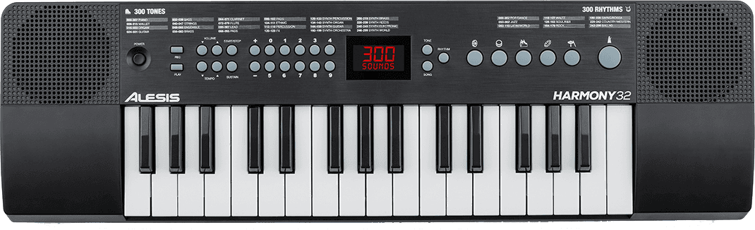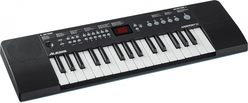 Un petit piano plein de ressources avec ses mensurations ultra compactes ne dépassant pas les 56 cm de long pour 16,5 cm de profondeur, et son petit kilogramme sur la balance, on pourrait presque confondre cet Harmony 32 avec un jouet. Ne vous laissez pas abuser ! Ce petit piano est un véritable concentré de ressources pour tout pianiste en herbe. Il n'intègre pas moins de 300 sons différents, 300 rythmes intégrés pour s'accompagner et 40 morceaux de démonstration, idéal pour s'entraîner à jouer par dessus la musique. En plus de cela, 5 effets de percussion sont directement accessibles à portée de main pour agrémenter vos sessions de jeu, ainsi qu'un métronome pour vous entrainer à jouer dans le temps !
