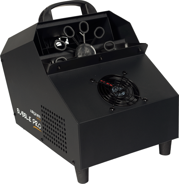 Avec un débit de liquide de plus de 2 litres/heure assuré par 2 ventilateurs soufflant à travers une roue à 10 baguettes tournant à 45 tours minutes , la Bubble Pro est capable de générer une impressionnante nuée de bulles qui émerveillera petits et grands pendant 20 minutes en toute autonomie, grâce à sa cuve de 0,75 litres. Un troisième ventilateur situé à l'avant souffle vers le haut, assurant une parfaite élévation des bulles dans les airs pour un effet des plus magiques.