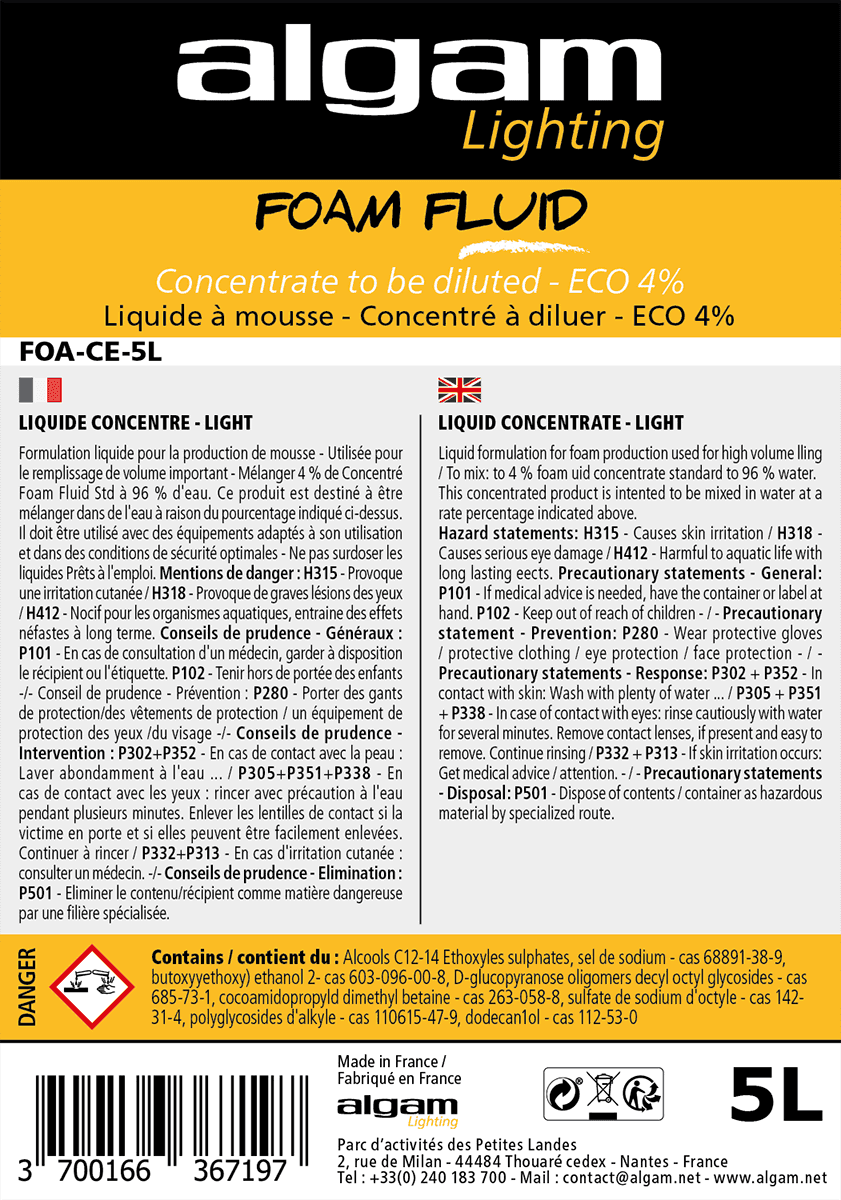 ALGAM LIGHTING FOA-CE-5L Liquide à mousse Concentré ECO 4%- 5 litres