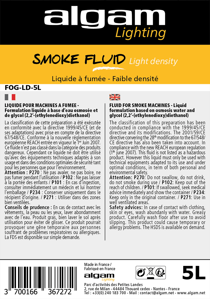 Liquide pour une fumée peu dense, qui se dissipera assez rapidement.