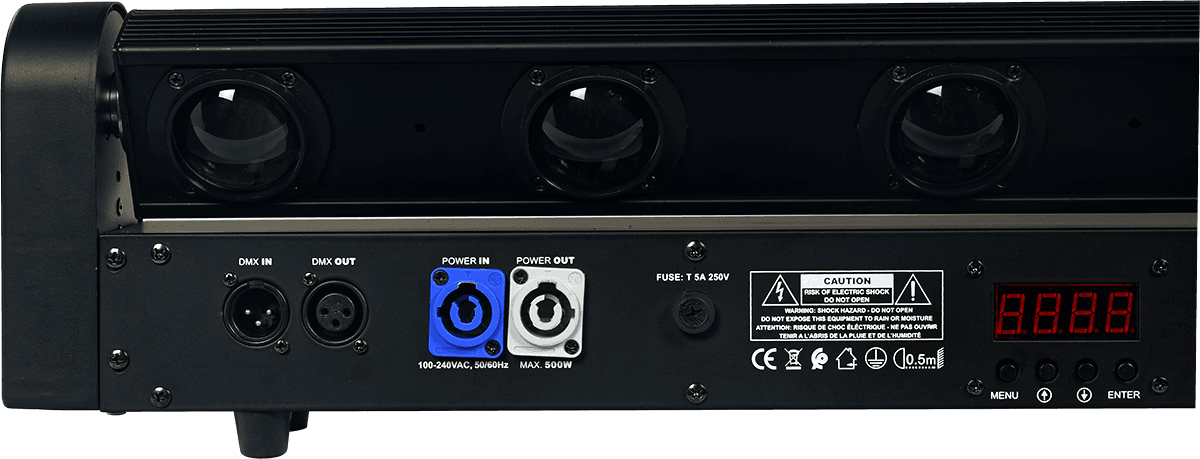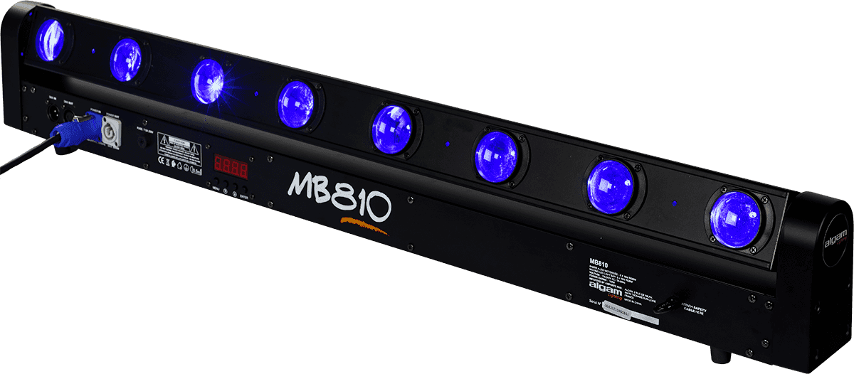 Avec ses 8 LEDs, la barre MB810 offre de puissants faisceaux d'un angle de 2.5 degrés en RGBW. Profitez de 22 effets internes (balayage, stroboscopique) et de son angle TILT à 265 degrés.