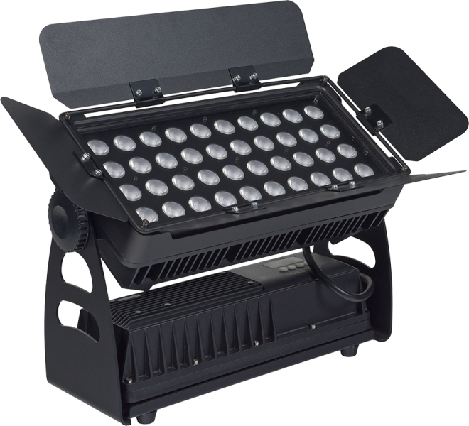 idéal pour mettre efficacement en lumière les façades de tout bâtiment ou monuments, mais également pour tout évènement extérieur. Ses 40 LED de 15W RGBW garantissent un flux lumineux intense et une palette de couleurs précise et fidèle, pouvant être efficacement orienté grâce à son berceau inclinable et aux 4 volets permettent de gérer précisément l'angle de balayage du faisceau. IP65 et pilotable en DMX, le FL600V-IP est conçu pour résister aux projections d'eau et aux infiltrations de poussière.