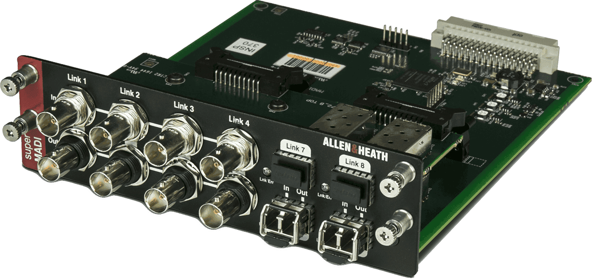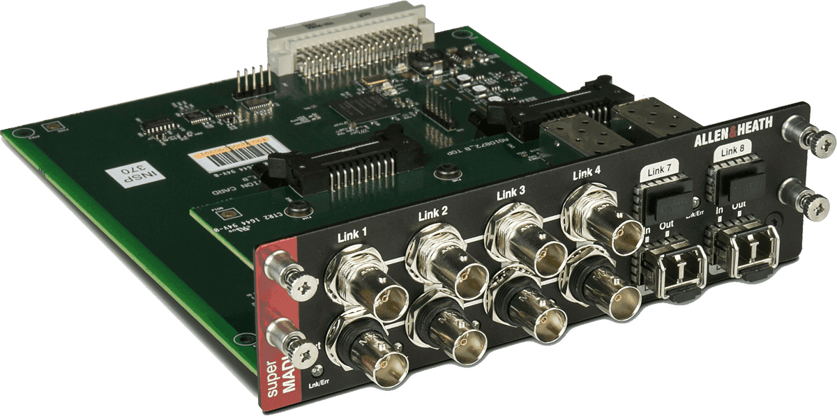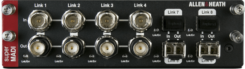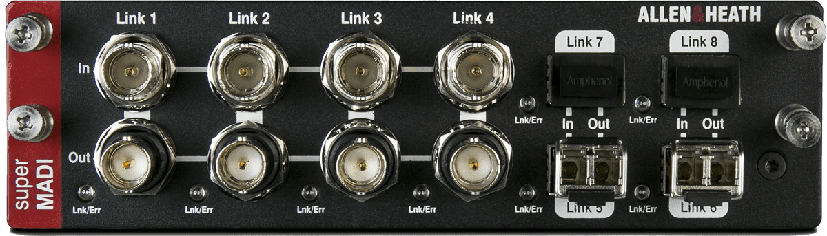 Modulaire et évolutif, le système dLive offre une large sélection de cartes optionnelles permettant d'adapter les fonctionnalités du système à votre besoin. En perpétuelle évolution et à la pointe de l'innovation, Allen&Heath propose des cartes embarquant les dernières technologies disponibles, telles que le WAVES 3 SoundGrid, le DANTE et la nouvelle connexion longue portée FibreACE. La carte audio numérique SuperMADI peut être adaptée dans n'importe quel MixRack ou surface dLive Classe S ou Classe C. Conçue pour améliorer l'intégration de la dLive dans de nombreuses applications telles que le broadcast, le live, ou les enregistrements, la carte SuperMADI offre une connectivité très riche incluant 8 connecteurs BNC et 4 slots SFP pour émetteurs-récepteurs fibre optique. Les formats coaxiaux et fibres offrent tout deux jusqu'à 128 entrées/sorties à 96 kHz, la redondance et un taux d'échantillonnage sélectionnable par paire, en plus de 2 modes de fonctionnement : Smux et HighSpeed 96kHz. La carte SuperMADI peut êgalement être utilisée par des ingénieurs et des prestataires afin de se connecter à n'importe quelle console tierce offrant un port MADI. - Limiteur : Non - Marqueurs de localisation : Non