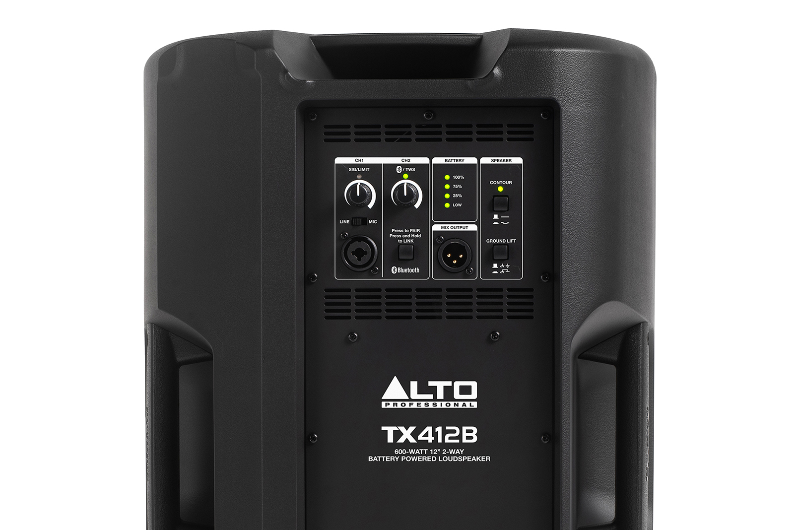 La TX412B est conçue pour résister aux rigueurs des déplacements fréquents et des installations répétées. Son boîtier en polypropylène injecté moulé et sa grille en métal assurent une robustesse exceptionnelle, tandis que ses poignées ergonomiques facilitent son transport. Robuste sans être encombrante et équipée d’une batterie offrant jusqu’à 7 heures d’autonomie, la TX412B est parfaite pour les artistes nomades.