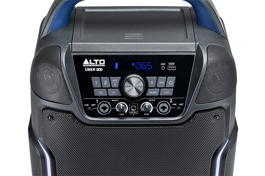 Grâce à la technologie Bluetooth 5.0 embarquée, l'Uber FX2 autorise une connexion sans fil simple et efficace avec vos appareils Bluetooth. Vous pouvez diffuser de la musique depuis votre smartphone, tablette ou ordinateur, ou même connecter deux enceintes Uber FX2 en stéréo pour une expérience audio immersive. L'application Alto Pro pour iOS et Android offre un contrôle intuitif des fonctions de mixage à distance, vous permettant de gérer les paramètres audio depuis votre appareil mobile.