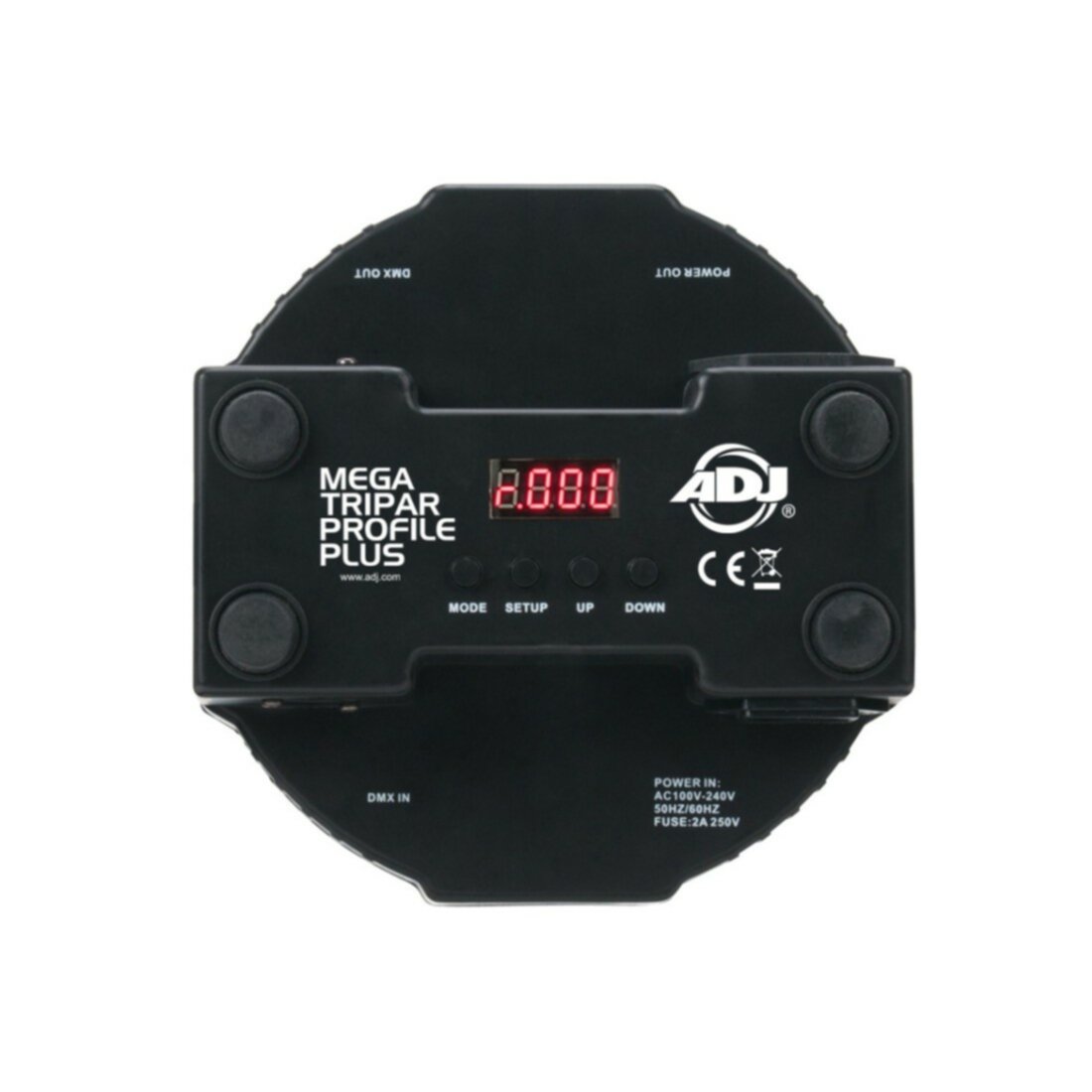 Le Mega TriPar Profile Plus comprend 5 LEDs RGB+UV 4-en-1 de 4W chacune à mélange de couleur fluide, un angle de faisceaux à 40°, 5 modes de fonctionnement (comprenant DMX, maître/esclave et musical) et 5 modes DMX pour une variété d’options de programmation. Les utilisateurs peuvent également utiliser la télécommande sans fil LED RC2 d’ADJ, vendue séparément, pour contrôler le Mega TriPar Profile Plus.