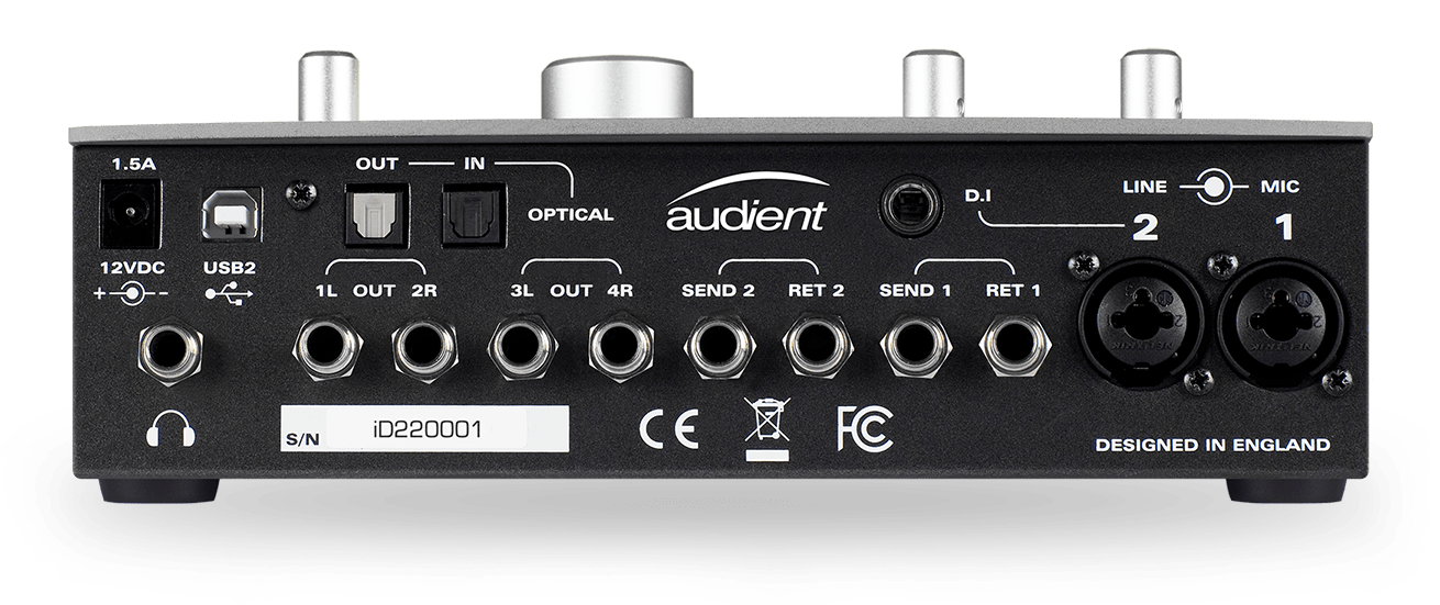 L'iD24 est entièrement alimenté par bus via USB*, ce qui signifie qu'il n'est pas nécessaire d'utiliser une alimentation externe. Il propose uniquement des fonctionnalités professionnelles dans un boîtier de bureau portable sans aucun compromis sur la qualité sonore ou les performances.