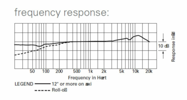 Sa capsule polarisée en permanence offre une réponse en fréquence large avec une légère bosse dans les aigus, pour un son plus détaillé. Son faible bruit et son niveau de pression maximale admissible élevé lui garantissent une large dynamique qui conviendra à de nombreuses applications.