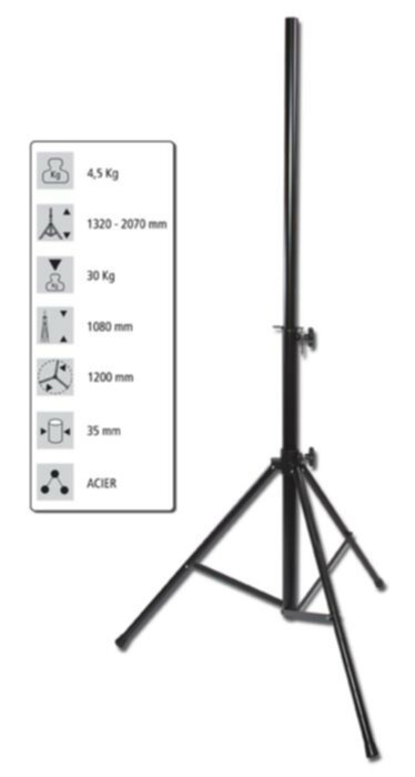 Pied d’enceinte tout métal - hauteur 2 m Idéal pour supporter des enceintes de 15 pouces.
