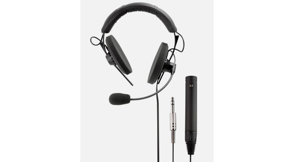 Combiné microphone et casque pour système d'interprétation, avec un microphone électret de type cardioïde, câble doté de connecteurs XLR mâle 3 broches et jack stéréo 6,35 mm. L'impédance est de 40 ohms.