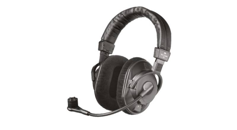 Combiné micro/casque 2 oreillettes fermées. Transducteurs à aimant néodyme et bande passante large (10 Hz-30 kHz). Micro électret cardioïde. Immunité RFI. Poids 370g.