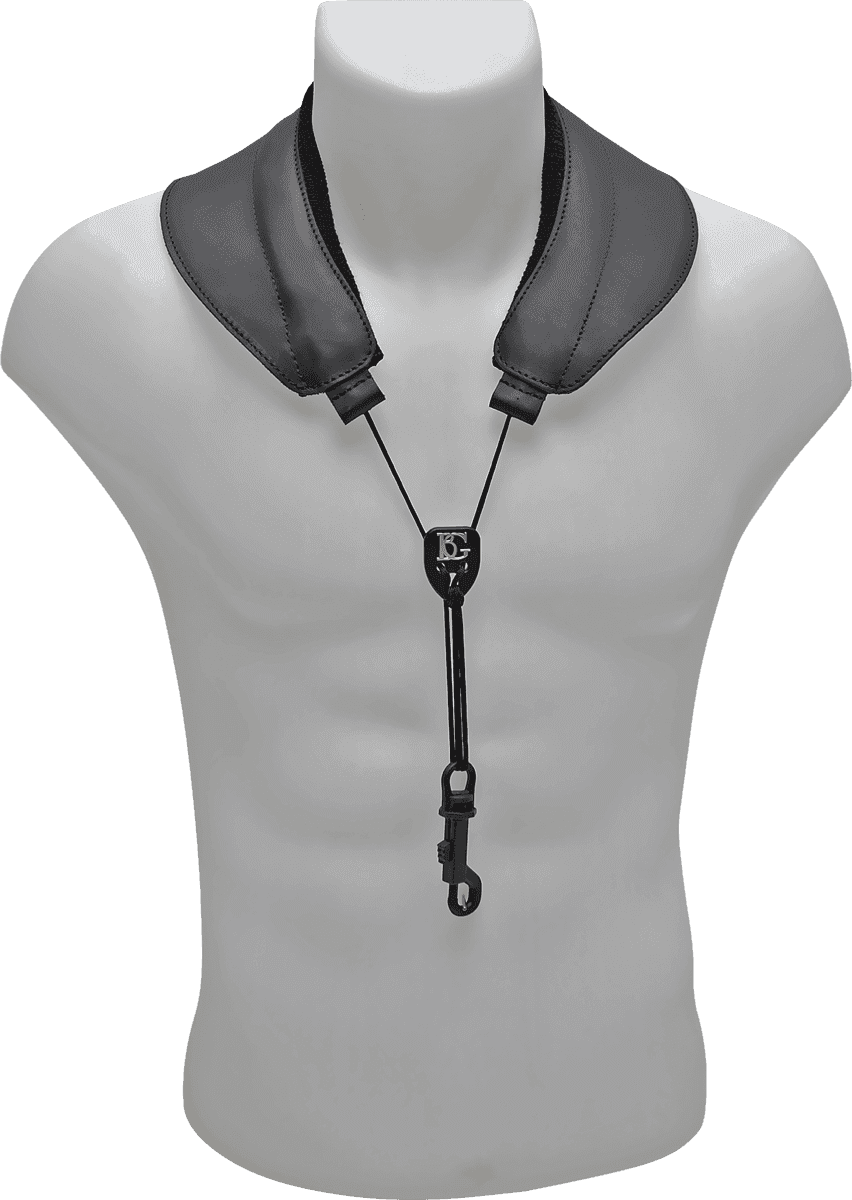 Fabriqué en cuir avec une bordure éponge, le cordon «yoke» a une forme échancrée pour une meilleure répartition du poids sur le cou et les épaules.