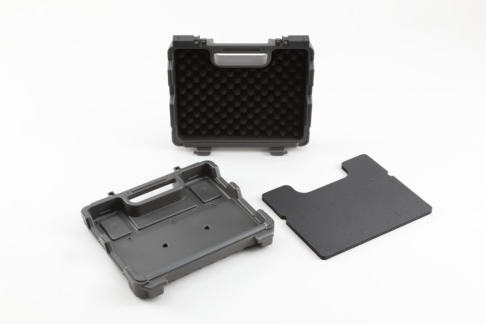 - Conception moulée, légère et robuste, avec un encombrement réduit, une poignée de transport intégrée et un couvercle détachable