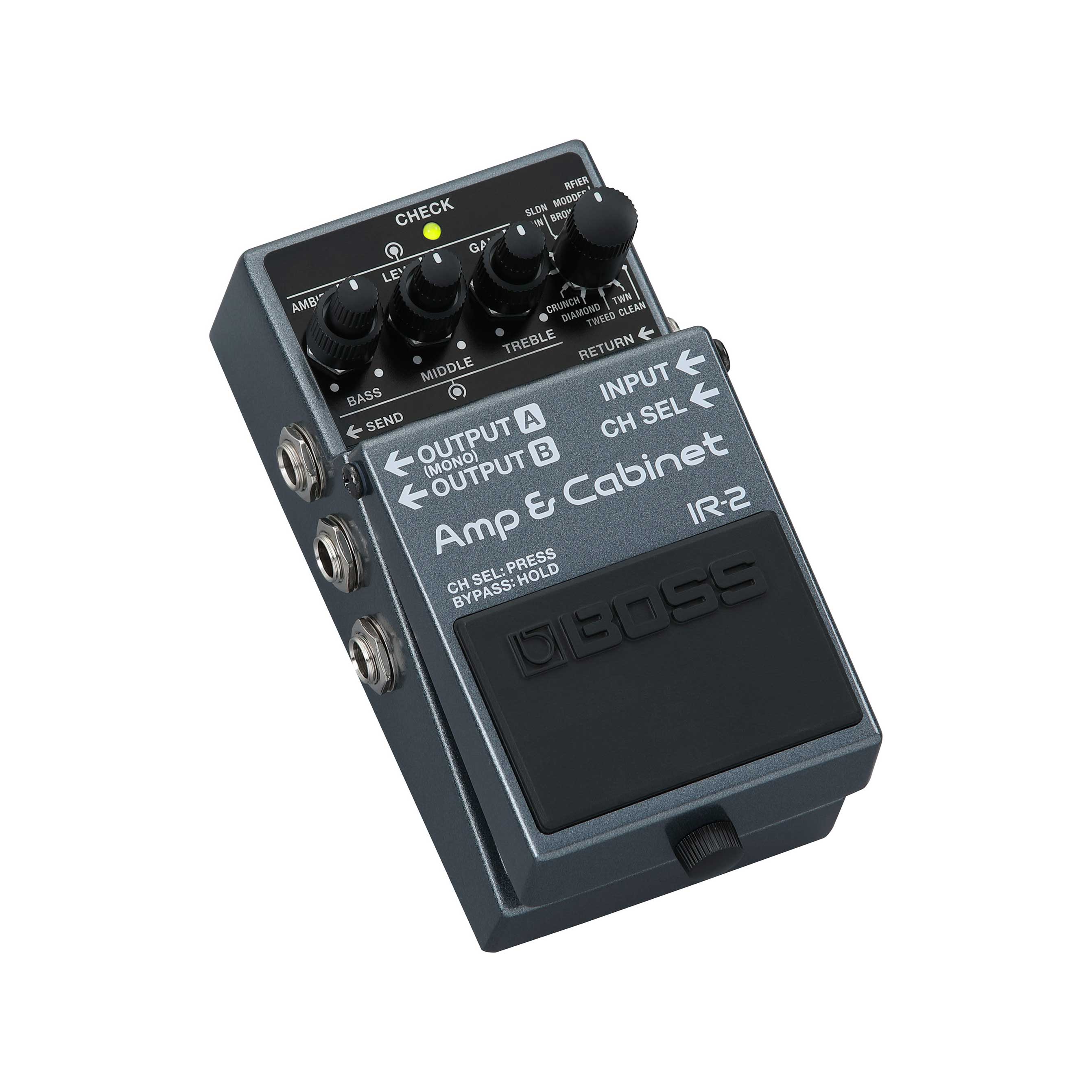L'IR-2 propose 11 solides plateformes capables de concocter tous types de sons de guitare, issus de combos à lampes ou de stacks vintage et modernes. Plusieurs amplis BOSS originaux sont aussi présents, dont le type Brown à haut gain hérité de la gamme Katana. Chaque ampli est associé à une IR Celestion Digital adaptée pour proposer immédiatement des sons de qualité. SI vous préférez utiliser des IRs de baffle issus de votre propre collection, vous pouvez les charger dans la pédale via USB-C depuis l'appli dédiée.