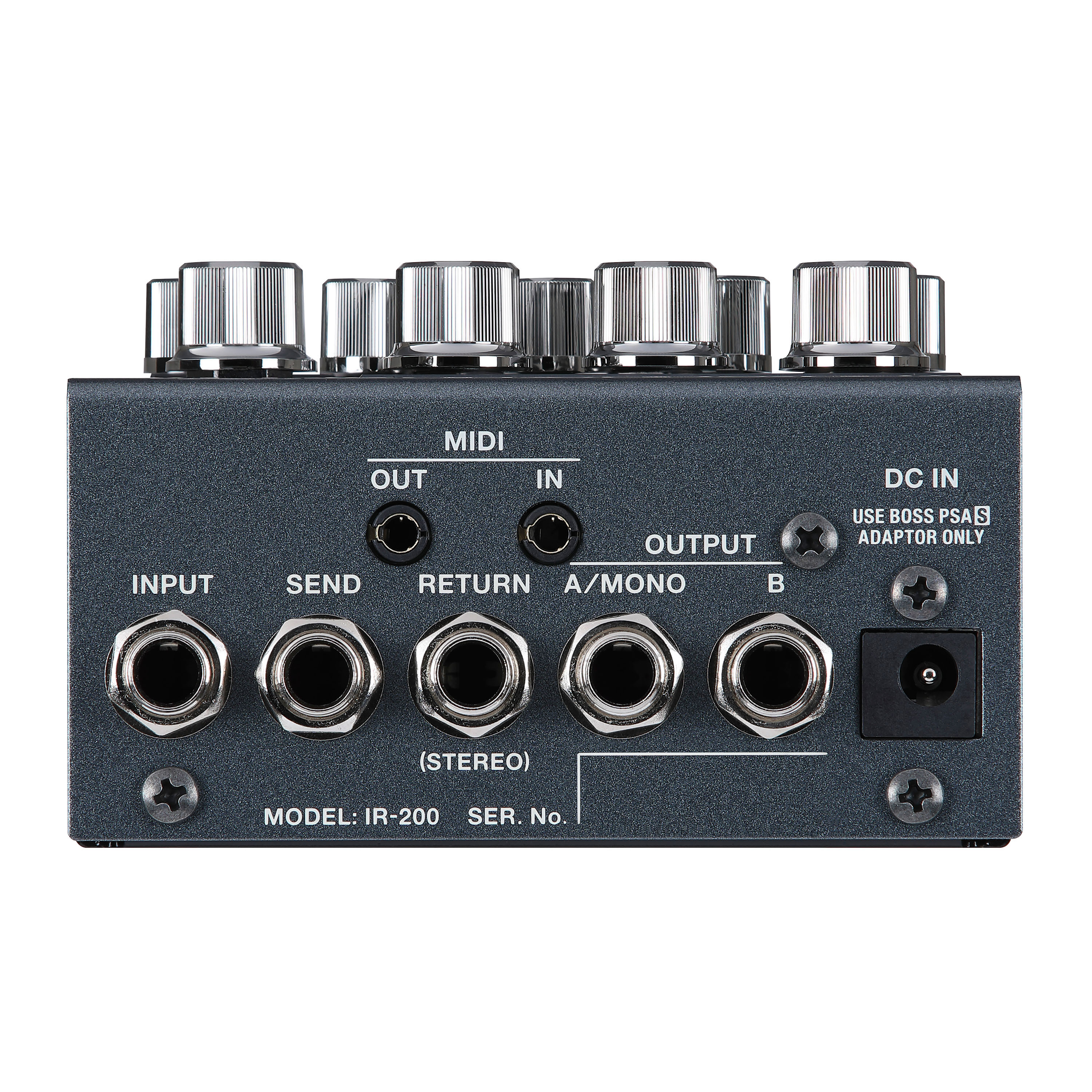 Découvrez l'IR-200, la solution d'ampli/IR compacte la plus évoluée du marché. Cette puissante pédale compacte procure un son et des performances de niveau supérieur en prise de son directe des guitares et basses, avec une qualité audio exceptionnelle, des amplis premiums, de nombreuses options de réglages, et le rappel instantané d'une des 128 mémoires disponibles. Plus de 150 réponses impulsionnelles de baffle haute résolution BOSS et Celestion Digital sont disponibles, avec 128 emplacements supplémentaires pour vos propres IRs mono ou stéréo. L'IR-200 transforme votre Pedalboard en solution de transfert direct du son pour la scène, le studio ou le travail à la maison. Il procure des sons d'amplis massifs dans un boîtier minimal, et s'intègre facilement à toutes vos pédales favorites : modulations, Delays, Reverbs, etc. Une fois votre son réglé, vous pouvez l'envoyer dans un ampli, une table de mixage de façade, un logiciel d'enregistrement, un casque audio, ou dans les quatre à la fois. • Une pédale de simulation d'ampli avec réponse impulsionnelle, intégrant des sons et fonctions premium • Une conversion AN/NA en 32 bits, un traitement interne en 32 bits à virgule flottante, une fréquence d’échantillonnage de 96 kHz • 128 emplacements IR utilisateur pour des fichiers WAV mono ou stéréo, une résolution jusqu'à 32 bits à virgule flottante, des longueurs de 200 ou 500 ms • Une bibliothèque intégrée conséquente de réponses impulsionnelles de baffle en preset, avec 144 IRs BOSS et 10 IRs Celestion Digital • La meilleure reproduction d'IR de sa catégorie grâce à deux DSPs spéciaux • Huit types d'amplis guitare et trois d'amplis basse pour jouer dans de nombreux styles • Utilisez jusqu'à deux IRs à la fois en mono ou stéréo • 128 mémoires pour les réglages utilisateur • Deux EQs dans chaque mémoire en plus de l'EQ global, en paramétrique ou graphique • Types d'ambiances Room, Studio et Hall • Boucle d'effets avec envoi mono et retour mono/stéréo, avec positionnement pré-baffle ou post-EQ au choix • Logiciel dédié pour charger les IRs et sauvegarder les mémoires • Une interface audio USB polyvalente pour l'enregistrement et la lecture audio avec un logiciel musical sur Mac et PC et terminal iOS • Possibilité de contrôle externe par commutateurs au pied, pédales d’expression et MIDI TRS