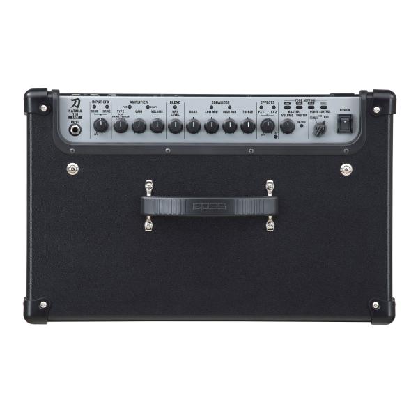 Le Katana-110 Bass dispose d'une puissance de 60 watts, d'un woofer de 10 pouces (25 cm), et d'un tweeter, le rendant idéal pour le jeu à la maison et en studio, ainsi que sur les petites scènes. Le tweeter fournit les hautes fréquences nécessaires au slap et autres styles modernes, mais peut être désactivé pour obtenir un son plus traditionnel. La gamme Katana est célèbre pour ses effets BOSS intégrés, et les nouveaux amplis basse Katana ne font pas exception. Des sections Comp/Limiter et Drive dédiées se chargent du traitement de base, tandis que FX1 et FX2 constituent un coffre aux effets issus de la sonothèque BOSS pour basse : des standards tels que les Chorus et Flangers aux Octaver, basse synthé et autres. La section FX2 propose également Reverb et Delay, et plus de 60 types d'effets peuvent y être chargés via le logiciel BOSS Tone Studio. Les contrôleurs de façade du Katana-110 Bass et du Katana-210 Bass permettent de régler facilement les détails de votre son. La section Blend, inspirée du travail en studio, permet au bassiste de récupérer le signal Dry, qu'il peut ensuite prémodeler à l'aide de trois réglages personnalisables pour atteindre la fusion timbrale optimale. Un EQ 4 bandes complet est également inclus, ainsi que trois fréquences cibles au choix pour les hauts et bas médiums. Grâce à six mémoires Tone Setting, il est possible de sauvegarder et rappeler six réglages de sons favoris, intégrant le type de préampli, l'EQ et les effets. - Puissance : 60 Watts - 1 Haut-parleur 10 pouces et 1 tweeter désactivable - 3 voicings sélectionnables - 4 sections d'effets indépendantes (compresseur, drive, FX1/2) - Egaliseur 4 bandes - 6 presets mémorisables - Possibilité de réduire le wattage afin d'obtenir un rendu d'ampli poussé à fort volume - Sorties USB et casques embarquant une émulation de baffle (idéal pour l'enregistrement) - Sortie XLR