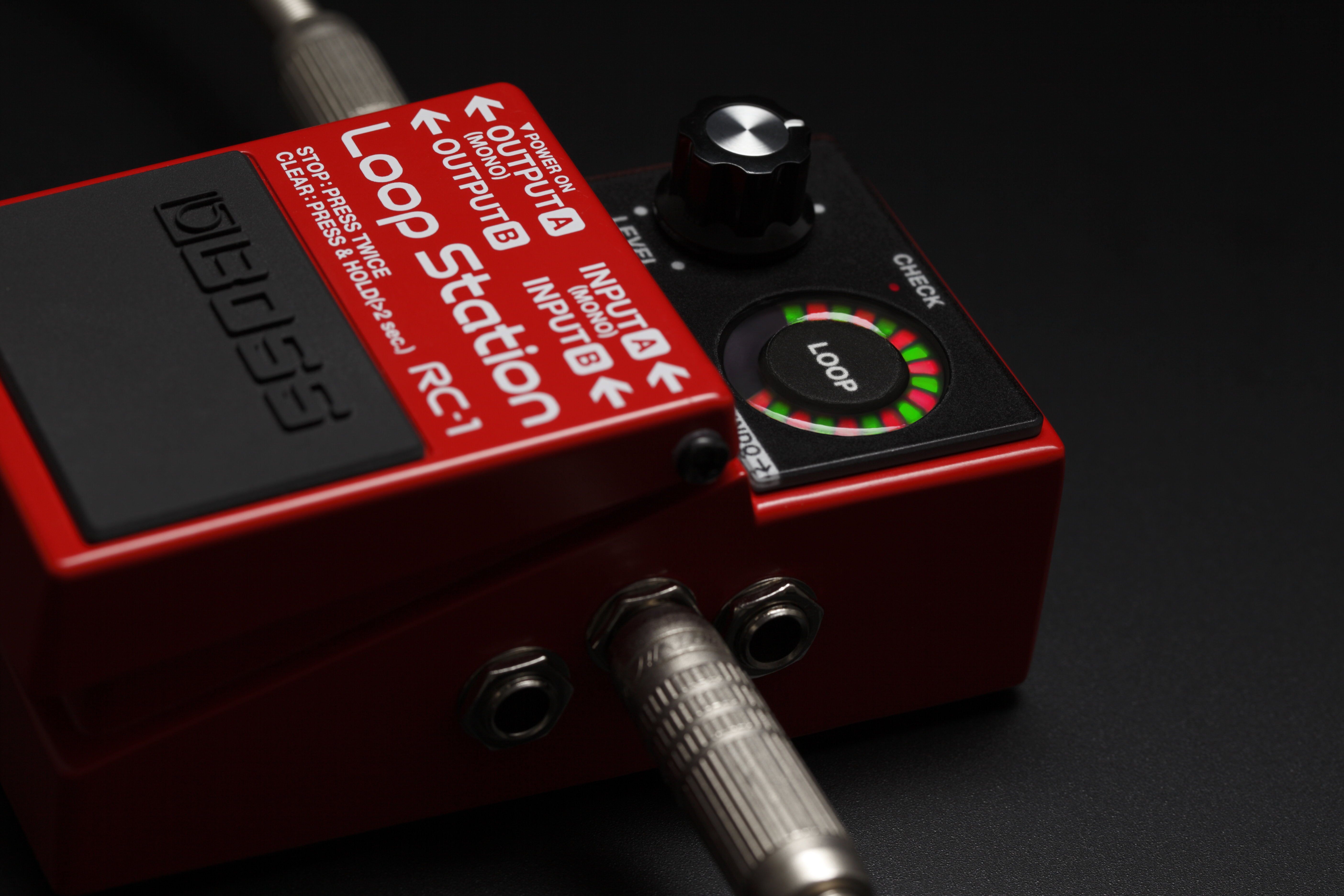 Ne cherchez pas plus loin - la solution pour les loops, c’est BOSS ! La BOSS RC-1 est la plus simple et la plus conviviale de nos Loop Stations à ce jour. Elle vous assurera des heures de fun- Depuis la sortie de la première Loop Station RC-20 en 2001, BOSS a montré la voie en commercialisant régulièrement de nouveaux modèles de création/gestion de boucles sonores. Bien qu’ils aient été utilisés et appréciés par de nombreux artistes, BOSS cherchait toujours à mettre au point le produit le plus simple et le plus abordable possible. La RC-1 est un looper facile d’utilisation et efficace. Grâce à cette pédale compacte BOSS, vous pourrez découvrir le plaisir de construire des boucles, les déclencher, jouer par-dessus, les effacer et recommencer. Bien entendu, la RC-1 est fidèle à la tradition BOSS de qualité et d’efficacité, qui a valu à la marque son succès auprès de musiciens du monde entier. Sur le dessus de cette pédale, vous trouverez un nouvel indicateur de loop innovant : une roue LED à 24 segments. Vous pouvez ainsi, d’un coup d’�"il, déterminer dans quel mode (Rec/Overdub/Play) vous vous trouvez. Avec un temps d’enregistrement maximum de 12 minutes de signal stéréo, la RC-1 est capable de stocker tout ce que pourrez jouer ou imaginer. Ses entrées et sorties jack stéréo peuvent servir à la connecter à des effets stéréo et des amplis. Elles vous permettent également d’y connecter des instruments stéréo tels que des synthétiseurs. Le fonctionnement sur piles et sur adaptateur secteur, ainsi les nombreuses possibilités de déclenchement par footswitch externe, ajoutent à sa praticité d’emploi. La RC-1 est un compagnon extrêmement précieux qui vous fera découvrir le monde merveilleux des loops. Principales caractéristiques Facile d’utilisation et efficace Le nouvel indicateur de loop innovant affiche le mode de bouclage en cours (Rec/Overdub/Play) Fonctionne sur une simple pile alcaline 9V (autonomie d’environ 4 heures et demie) Fonctionnement possible sur adaptateur secteur (gamme PSA, vendu séparément) Jusqu’à 12 minutes d’enregistrement stéréo mémorisables Entrées et sorties stéréo De nombreuses options de déclenchement par footswitch externe Les phrases sont gardées en mémoire même lorsque la RC-1 est éteinte. RC-1: Loop Station Vous resterez toujours dans la boucle Tout le monde se sert de boucles de nos jours, mais avec certains loopers, vous n’avez souvent pas assez de temps d’enregistrement pour toutes les loops nécessaires à vos �"uvres. Grâce à sa capacité d’enregistrement stéréo de 12 minutes, la RC-1 possède la plus grosse capacité en son stéréo de sa catégorie. La RC-1 est-elle adaptée à vos besoins ? Que vous soyez débutant ou musicien professionnel, la RC-1 constitue un élément de choix pour tout guitariste, bassiste ou claviériste qui cherche à se faire plaisir sans se prendre la tête. Quelles sont les utilisations de la RC-1 ? Vous pouvez intégrer la RC-1 à votre pedalboard ou à votre chaîne d’effets. Elle constitue également un bon outil d’apprentissage et d’entraînement, qui vous permettra de créer rapidement des pistes de playback sur lesquelles vous pourrez improviser. Vous pourrez même créer des boucles de synthé ou autres instruments stéréo et vous en servir comme accompagnement. Le nouvel indicateur de loop, c’est pour faire joli ? En fait, oui et non. Bien entendu, il donne un look inédit à la pédale, mais il est également très utile. Il vous indique clairement le statut de la boucle en cours : Rec, Overdub ou Play. Vous pouvez également placer cet indicateur en mode de visualisation de votre boucle. Durant la répétition de celle-ci, la vitesse à laquelle tournent les voyants de l’indicateur correspond directement à la longueur de la boucle. Des entrées et sorties stéréo, pour quoi faire ? Il semble que certains produits veulent vous faire croire que l’enregistrement et le playback en mono sont bien suffisants pour votre utilisation. Aujourd’hui, nous, chez BOSS, sommes persuadés que vous êtes tout à fait à même d’utiliser un looper STÉRÉO. Grâce aux entrées et sorties stéréo, vous pouvez enregistrer et faire tourner vos créations en STÉRÉO, le format dans lequel la musique d’aujourd’hui est jouée, écoutée et appréciée. Pourquoi voudrais-je un footswitch externe ? La FS-7 (en option) rend le déclenchement au pied encore plus simple. Sa petite taille lui permettra de s’insérer facilement dans votre pedalboard. Presser le switch A arrête la fonction en cours (Rec, Overdub ou Play). Une pression de deux secondes ou plus sur ce même switch efface la boucle en cours. En pressant le switch B, vous annulez ou recommencez votre boucle. C’est aussi simple que cela. BOSS RC-1: Loop Station - Niveau d’entrée nominal -20 dBu* - Impédance d’entrée 1 M ohm - Niveau de sortie nominal -20 dBu* - Impédance de sortie 1 kiloohm - Impédance de charge recommandée 10 kiloohms ou plus - Contrôleurs Pédale Switch Bouton LEVEL - Témoins CHECK LOOP - Connectique INPUT A (MONO) : Jack 1/4 pouce INPUT B : Jack 1/4 pouce OUTPUT A (MONO) : Jack 1/4 pouce OUTPUT B : Jack 1/4 pouce STOP/UNDO : Jack 1/4 pouce TRS Entrée alimentation DC IN - Alimentation Pile alcaline* (9 V, 6LR61) Adaptateur secteur (gamme PSA, vendu séparément) * Les piles rechargeables Ni-MH ne peuvent pas être utilisées. - Ampérage 85 mA - Durée de vie estimée de la pile en utilisation continue (ces chiffres peuvent varier selon les conditions d'utilisation) Alcaline: 4 heures et demie environ - Dimensions 73 (L) x 129 (P) x 59 (H) mm - Poids (avec pile incluse) 440 g - Accessoires Manuel d'utilisation Imprimés "UTILISATION SANS RISQUE DE L'APPAREIL", "NOTE IMPORTANTE", et "Information" Pile alcaline (9 V, 6LR61) - Options (vendues séparément) Adaptateur secteur (gamme PSA) Footswitch : FS-5U, FS-6, FS-7 * 0 dBu = 0