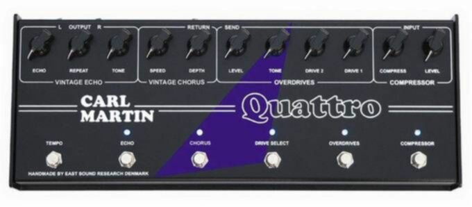 Le Quattro est une multi effets composé d'un compresseur, d'un circuit overdrive deux canaux, d'un chorus vintage et d'un echo. Point. Reste que la simplicité de ce multi effets n'a d'égale que l'excellence des sonorités proposées.