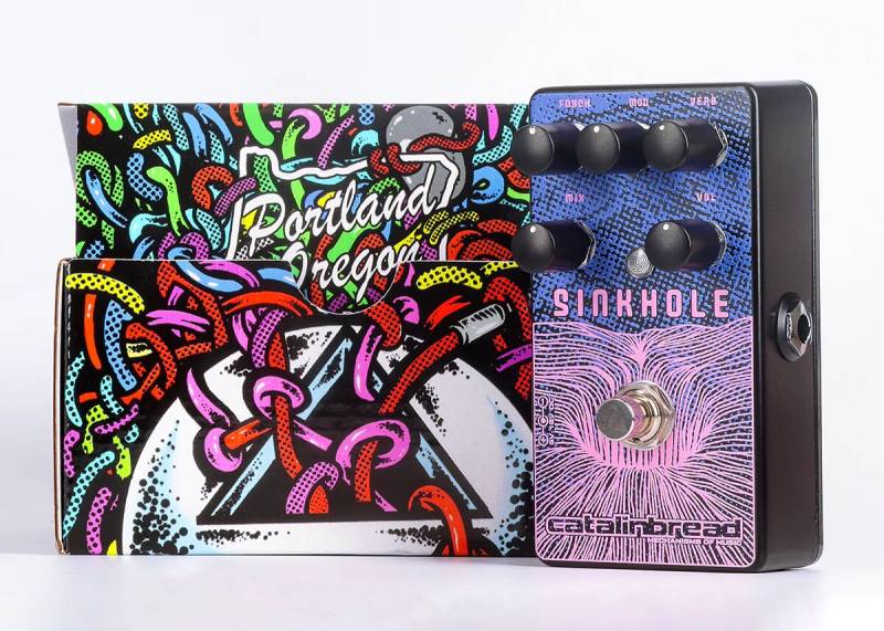 La Sinkhole de Catalinbread rassemble une réverbe très riche en harmoniques selon le fabricant, et un chorus à 4 voix. Elle dispose de réglages qui lui permettent de balayer de nombreux sons, du filtre en peigne à un auto filtre en passant par un phaser. Pour atteindre ces sonorités, la pédale profite de réglages de :