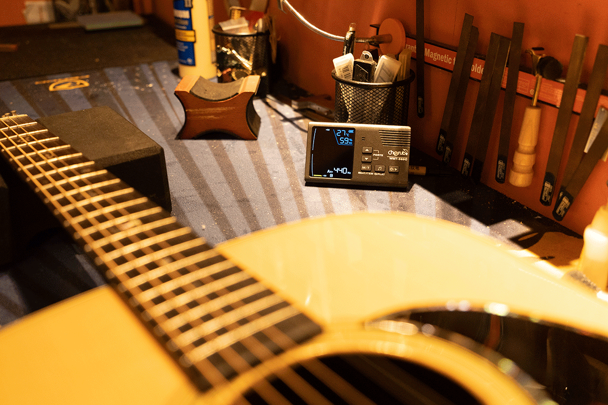 En fonction accordeur, 5 modes d’accordage sont disponibles (chromatique, guitare, basse, violon, ukulélé) avec flat tuning possible. La plage d’accordage est large et la précision de l’accordage est très précise (±1 centième). En fonction métronome, les sons électroniques ou comptage vocal peuvent suivre 8 signatures rythmiques sur une plage de tempo très étendue. Les fonctions de thermomètre/hygromètre sont toujours actives et indiquées en bleu afin de toujours garder un œil sur la température et l’humidité ambiante, pour une protection et un entretien sans surprise de vos instruments.