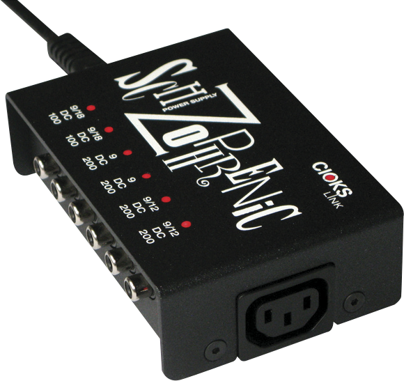 Nouveau modèle de la Schizophrenic, alimentation de taille réduite mais très versatile. Elle a 6 sorties isolées en 9, 12 ou 18 Volts sans avoir besoin d'adaptateur Flex. Les 2 premières sorties à 100 mA chacune peuvent être en 9 ou 18 Volts, tandis que les 2 dernières à 200 mA chacune peuvent être en 9 ou 12 Volts. Les 2 sorties du milieu à 200 mA chacune sont en 9 Volts uniquement. Grâce aux adaptateurs Flex de la marque, une multitude de combinaisons sont possibles pour alimenter en 9, 12, 18 ou 24 Volts et/ou avec des courants plus élevés que les 100 ou 200 mA de chaque sortie, en combinant des Flex avec des sorties de l'alimentation.