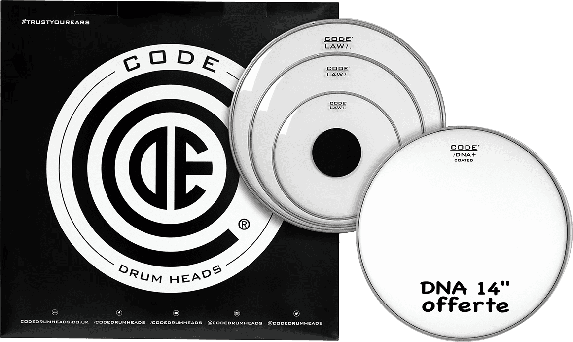 Un son vintage 70’s avec la série LAW ! Une peau simple pli de 10 mil avec un dot de renforcement noir au centre de la peau qui vous rappelle le look des peaux de votre jeunesse ! Elle permet d’obtenir un son punchy avec une attaque claire et précise ! Ce pack est composé d'une peau de 10", 12" et 14" ainsi qu'une peau de caisse claire offerte en DNA coated 14" !