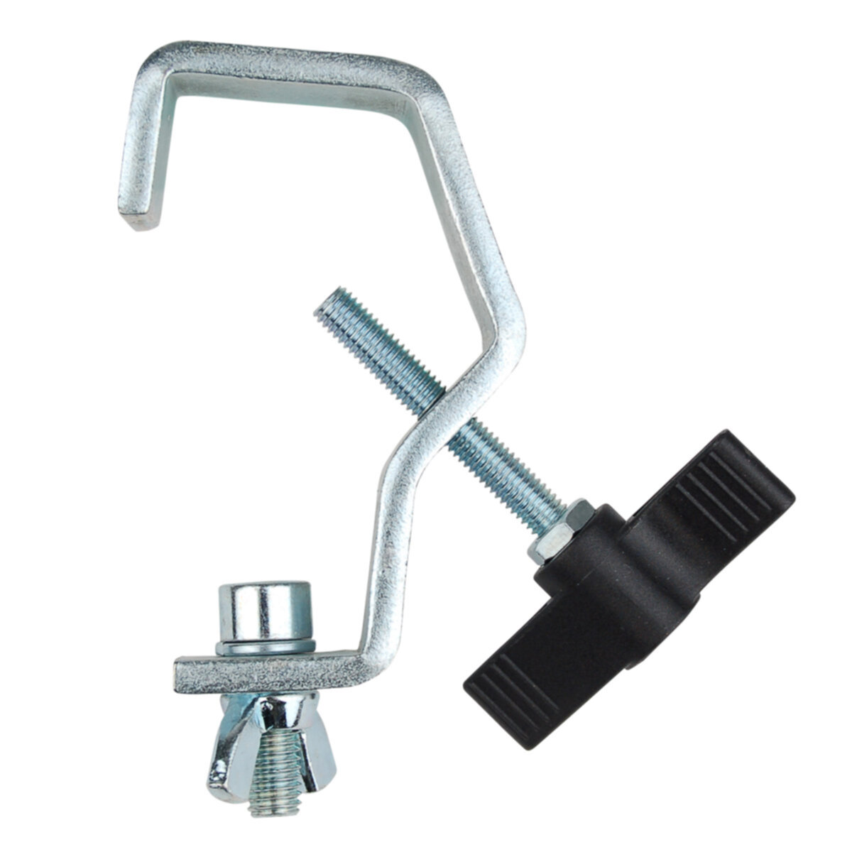 Crochet robuste prévu pour l'accroche sur tube ou structure. • Vissage et dévissage de grande facilité grâce à une large molette de serrage ergonomique.