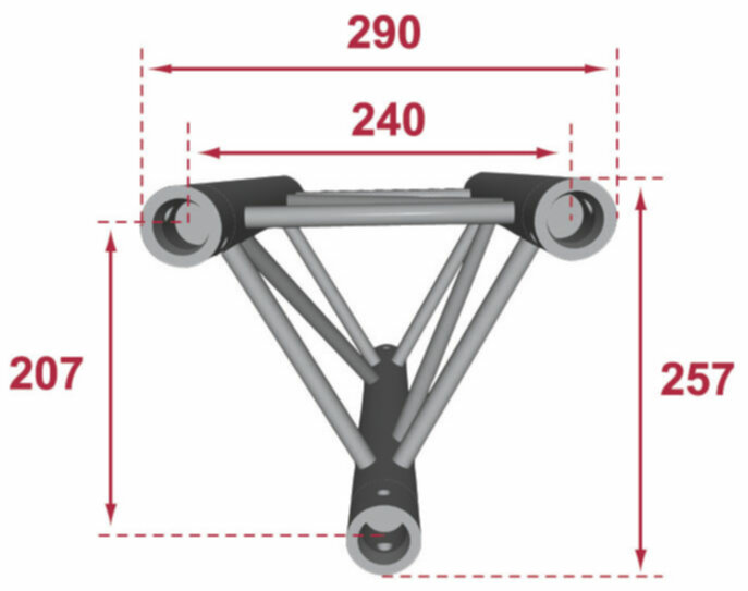 • Section triangulaire de 240 mm d’entraxe entre chaque tube (290 mm extérieur)