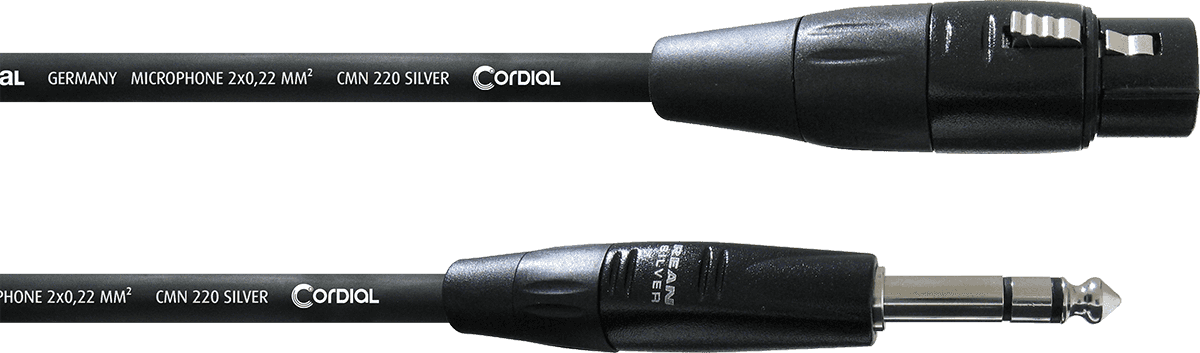 Les fiches REAN SILVER® XLR femelle et jack stéréo 6,3 mm, développées par NEUTRIK® dans un noir subtil, sont combinées au câble de la gamme Essentials CMN220 dont la surface de conducteur est de 0,22 mm² (AWG 24), au blindage en spirale de fils de cuivre nus.