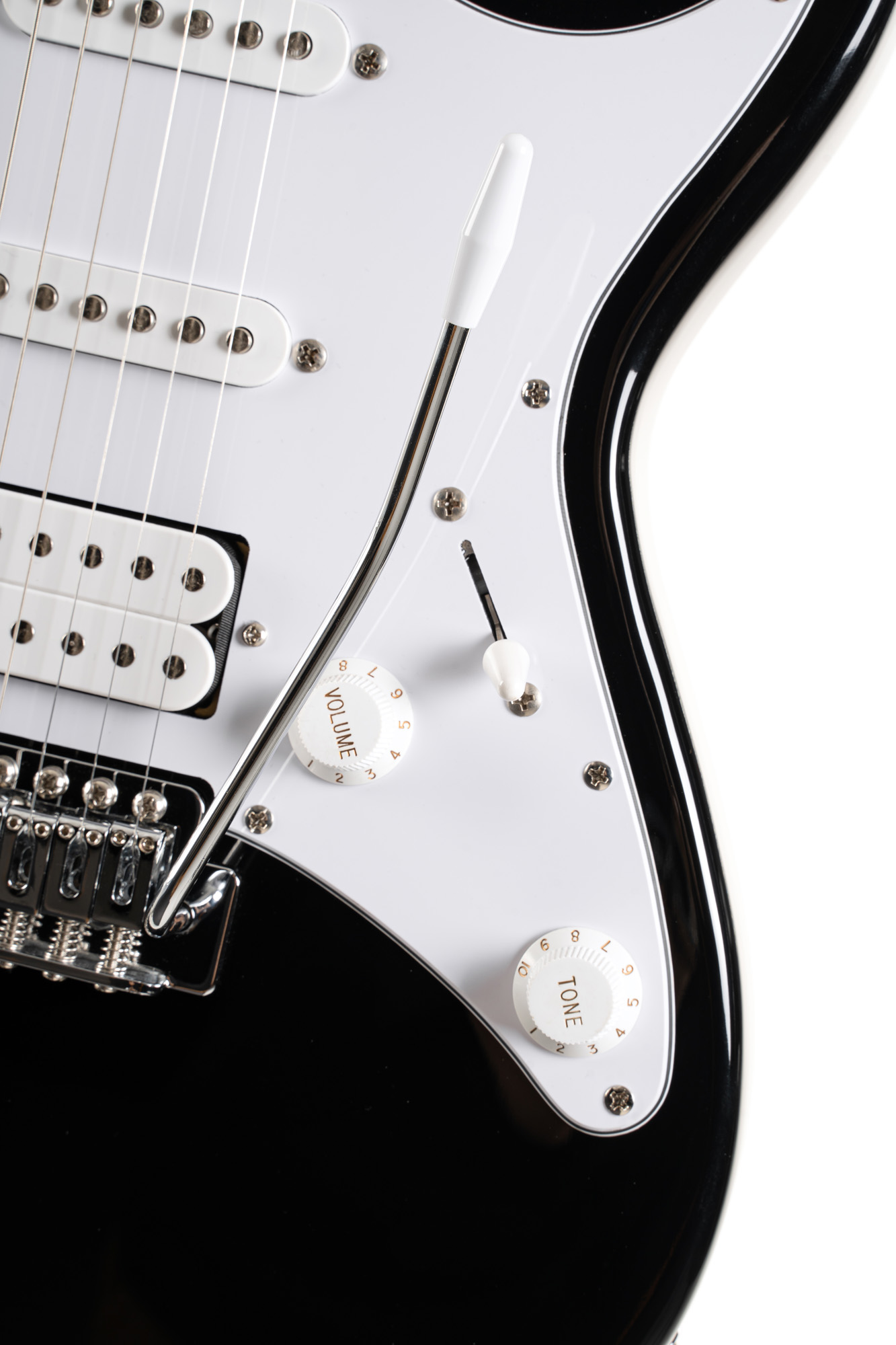 G200, corps peuplier, manche érable, touche jatoba (radius 9.75"), sillet 42 mm, 22 frettes, 2 micros simples et 1 double Powersound, 1 volume, 1 tonalité, sélecteur 5 positions, vibrato vintage 6 vis, mécaniques à blocage étagées, accastillage chromé, plaque blanche, cordes D'Addario EXL120.
