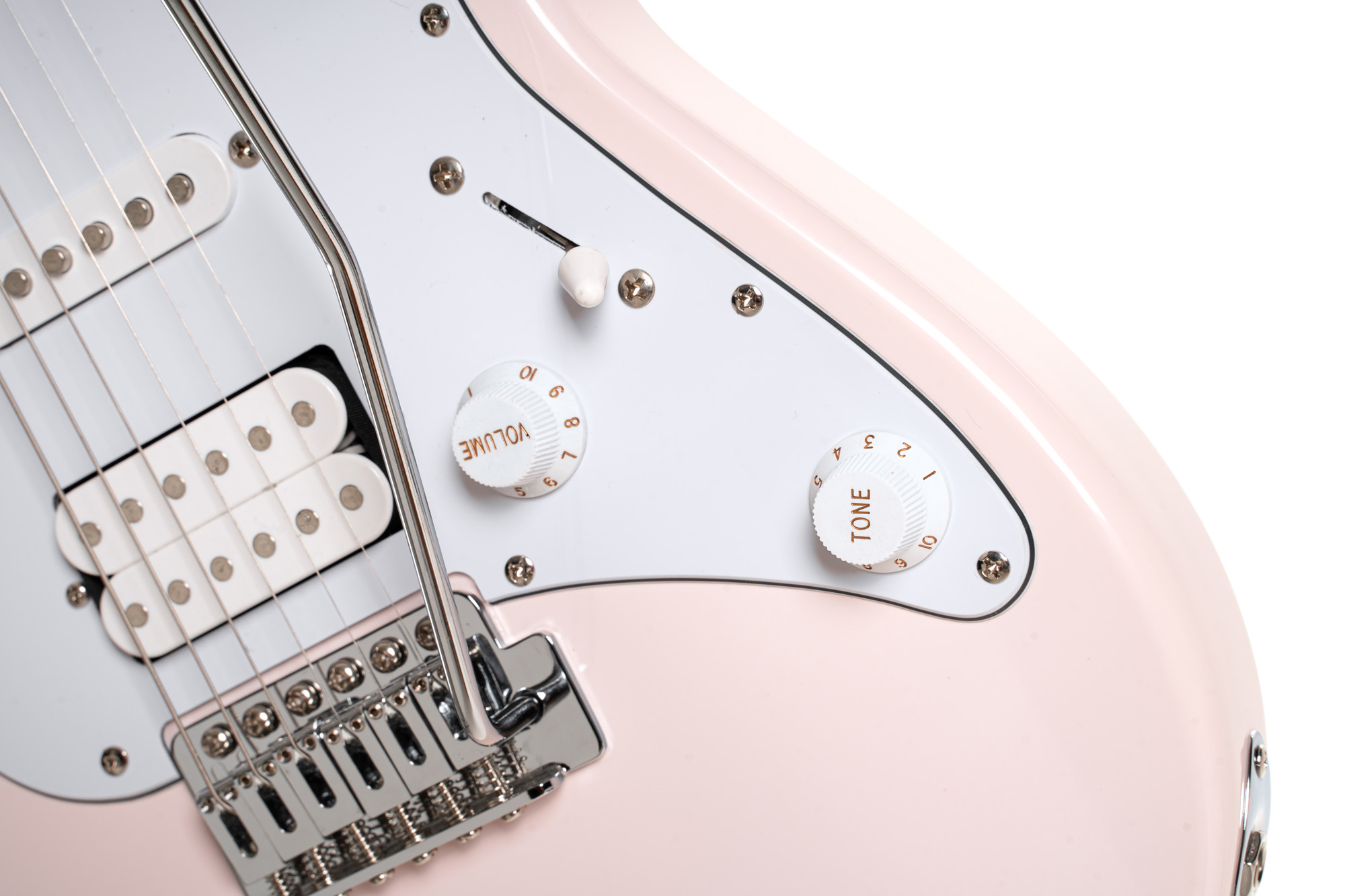 G200SP, corps peuplier, manche érable, touche jatoba (radius 9.45"), sillet 42 mm, 22 frettes, 2 micros simples et 1 double Powersound, 1 volume, 1 tonalité, sélecteur 5 positions, vibrato vintage 6 vis, mécaniques à blocage étagées, accastillage chromé, plaque blanche.