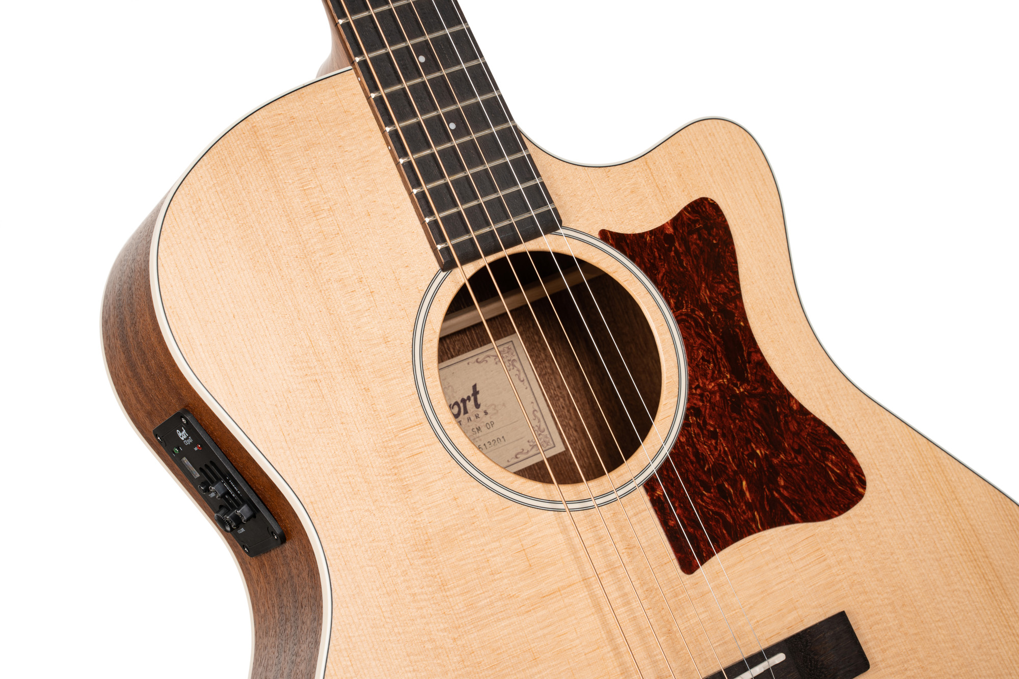 GA1E, modèle Grand Auditorium, table épicéa massif, fond & éclisses acajou, manche acajou, touche & chevalet ovangkol, 20 frettes, sillet 45 mm, diapason 25.5", mécaniques à bain d'huile, EQ CE304T.