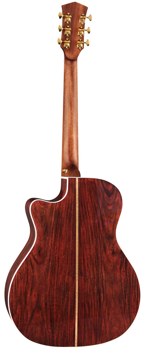 Cette nouvelle série GOLD a été conçue avec une seule chose à l'esprit: le son. Et vous allez l'entendre dès le premier accord ! Grâce au nouveau procédé de torréfaction ATV (Aged To Vintage) appliqué à la table, à la finition UV permettant d'obtenir une couche de vernis plus fine, au manche renforcé par deux inserts en palissandre, ou bien encore à la qualité supérieure de fabrication jusque dans les moindres détails, la série GOLD est déjà un must en matière de son et d'élégance !