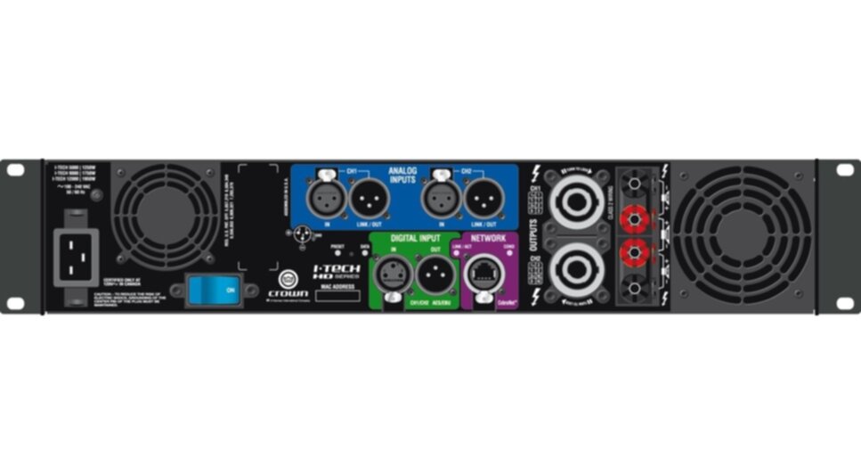En utilisant la 5eme génération de circuit d’amplification Classe I breveté par Crown, l’I-Tech HD délivre beaucoup plus de puissance pour un poids encore plus réduit et moins de pertes thermiques.