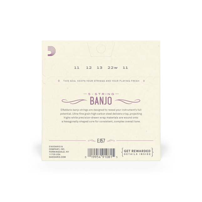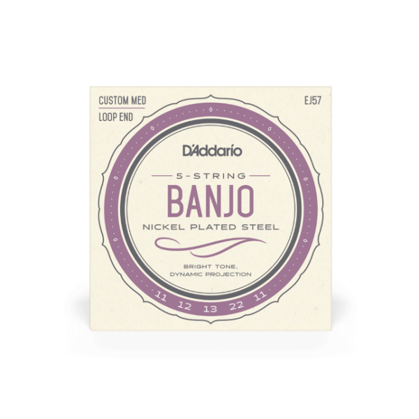 EJ57, D'Addario's heaviest 5-string banjo set, delivers maximum volume and resistance for heavy picking. Loopend construction for universal fit.