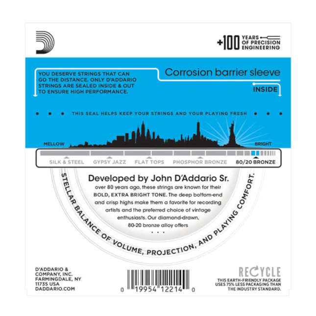 Le bronze 80/20, communément appelé laiton, est l'alliage que John D'Addario père et John D'Angelico avaient choisi à l'origine pour leurs cordes de guitare acoustique dans les années 1930.