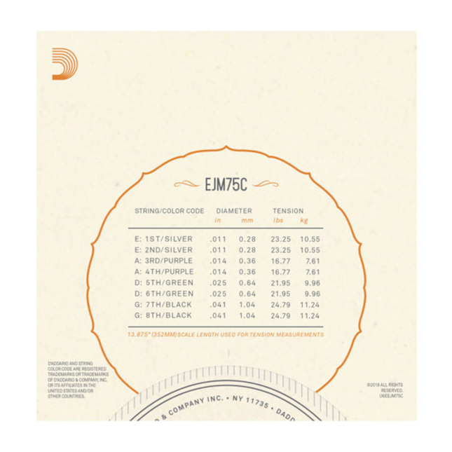 Caractéristiques Cordes D'Addario EJM75 Monel Mandoline, Medium, 11-41