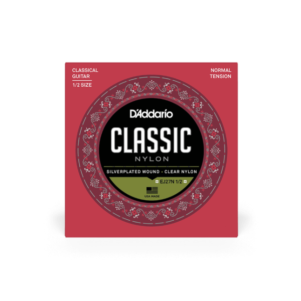 Les cordes D'Addario EJ27 pour guitare classique conviennent aussi bien aux débutants qu'aux étudiants. Ce jeu est optimisé pour être utilisé sur une guitare classique à l'échelle 1/2. Il contient 3 cordes aiguës en nylon translucide et 3 cordes graves en cuivre plaqué argent (coeur nylon) pour un équilibre optimal de chaleur, de projection, et de durée de vie.Les cordes en nylon D'Addario EJ27 Classic pour guitare conviennent aussi bien aux débutants et aux étudiants qu'aux professionnels. Chaque jeu contient 3 cordes aiguës en nylon et 3 cordes graves en cuivre plaqué argent pour un équilibre optimal de chaleur, projection, et durée de vie. Chaque jeu est soumis aux mêmes standards de qualités que nos jeux de cordes professionnels et constituent donc un choix idéal pour tous les musiciens recherchant un jeu fiable et bon marché. Le jeu à tension normale est également disponible pour les guitares classiques de taille réduite (1/2 et 3/4).