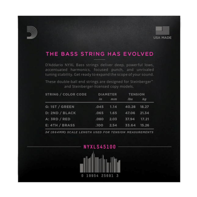 Les cordes pour basse électrique D'Addario NYXL bénéficient de la combinaison novatrice des filets plaqués nickel NYXL et de nos âmes NY Steel pour une gamme dynamique étendue et une meilleure réponse harmonique. Le jeu NYXL45105 est un jeu hybride optimisé pour les bassistes qui recherchent un équilibre idéal entre flexibilité et tonalité.